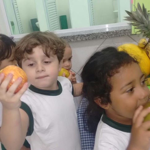 Uma aula saborosa, com muitas cores e sabores. E sabe quais são as vantagens de incluir frutas no dia a dia das crianças? Além de conterem água, fibras, vitaminas, sais minerais, frutose, carboidratos, gorduras e proteínas, elas possuem poucas calorias. Huuum que delícia!!