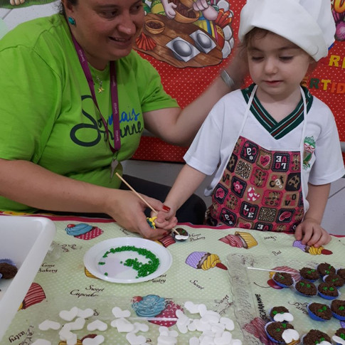 Os pequenos do Infantil tiveram uma visita muito especial nesta Páscoa, um lindo e fofo coelhinho, onde eles puderam brincar e dar bastante carinho. Além disso, eles colocaram as mãozinhas na massa, aprenderam a confeitar brigadeiros e beijinhos. Tudo no capricho e delicioso. 🐰🍫